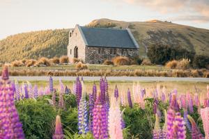 Lupin Sunset Lake Tekapo - New Zealand